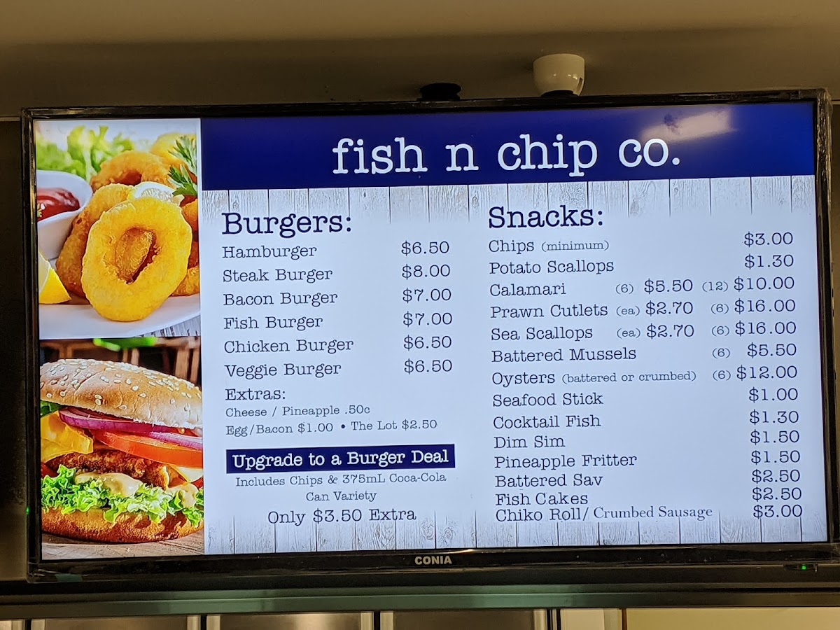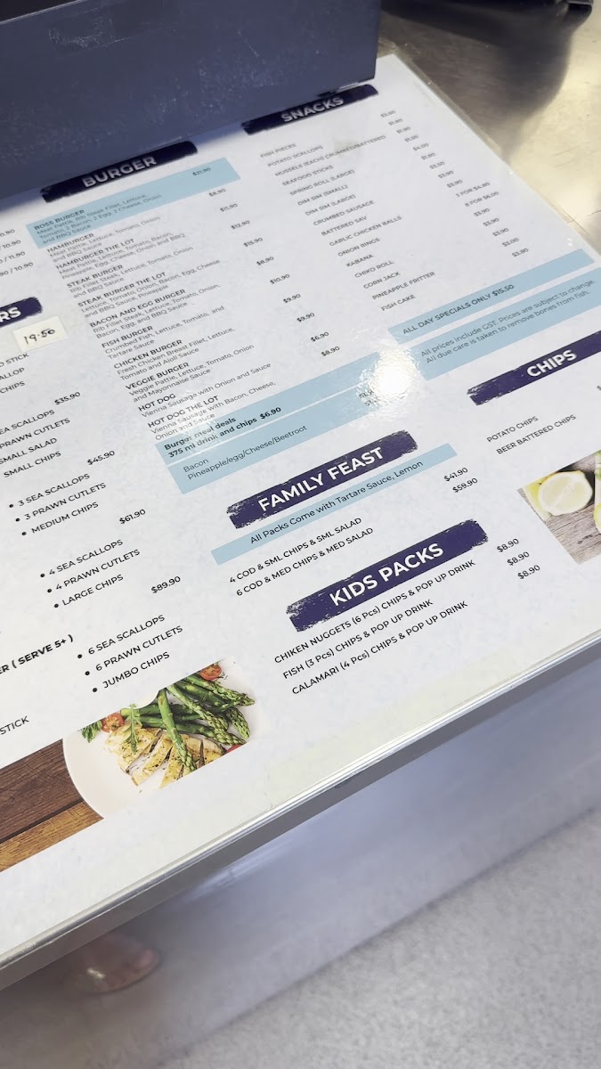 Overall, the menu at Fish N Flames offers a satisfying mix of classic takeaway favorites and seafood staples, making it easy to find something for every craving. The burger selection, including the Steak Burger, Fish Burger, Bacon Burger, Veggie Burger (V), and Hamburger, provides hearty, no-fuss options, while the seafood lineup such as Whiting, Cod, Atlantic Salmon, Flake, and Barramundi highlights fresh, traditional choices. Their value-driven deals like the Fisherman’s Basket, Calamari Pack, Family Pack, Fish & Chips, and Burger Combo make it convenient for both individuals and groups. On the side, snacks like Fish Cake, Panko Crumbed Calamari Rings, Dim Sims, Kabana, and Potato Scallops add variety, complemented by Chips, Gluten Free Chips, and Beer Battered Chips. Fresh options such as Coleslaw, Seafood Salad, Greek Salad, and Caesar Salad balance the menu, while sauces including BBQ Sauce, Gravy, Homemade Tartare Sauce, Homemade Aioli, and Homemade Seafood Sauce enhance the flavors. To round it off, drinks like 375 Ml Can Varieties, Mount Franklin 600 Ml Water, Monster Energy 500 Ml, Pepsi 600 Ml Varieties, and Lipton Iced Tea 500 Ml Varieties ensure there’s something refreshing to pair with every meal.